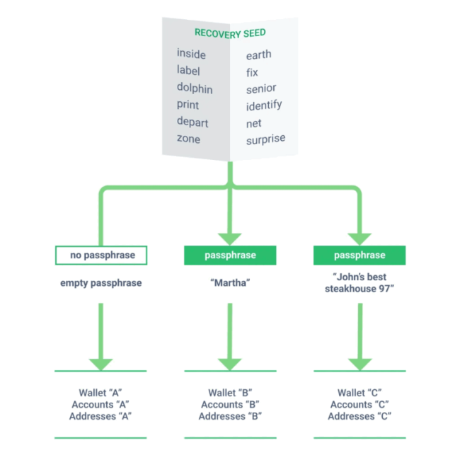 Tenemos la posibilidad de obtener una nueva passphrase para añadirla a la nueva semilla hija o bien utilizar la misma passphrase que utilizamos con la semilla maestra.