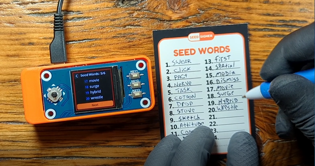 Transcribir la nueva semilla hija y el passphrase a las tarjetas de respaldo.