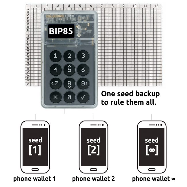 BIP-85 es un estándar de Bitcoin que introduce un proceso para derivar matemáticamente múltiples semillas a partir de la semilla original. Las semillas derivadas son únicas y no pueden ser rastreadas entre sí, ni pueden ser rastreadas hasta el valor original de la semilla. Puedes utilizar la semilla original para recrear cualquier semilla derivada si es necesario. Al respaldar tu semilla original, estás respaldando todas las semillas derivadas de ella. Esto es posible gracias a la entropía determinista.