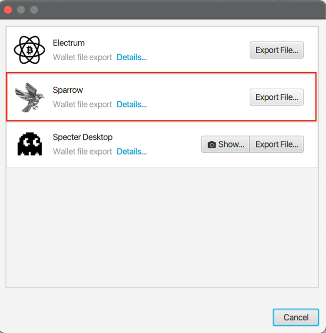Para hacer todo lo anteriormente descrito, es necesario usar carteras que dispongan de estas características. Veamos un ejemplo en Sparrow Wallet: