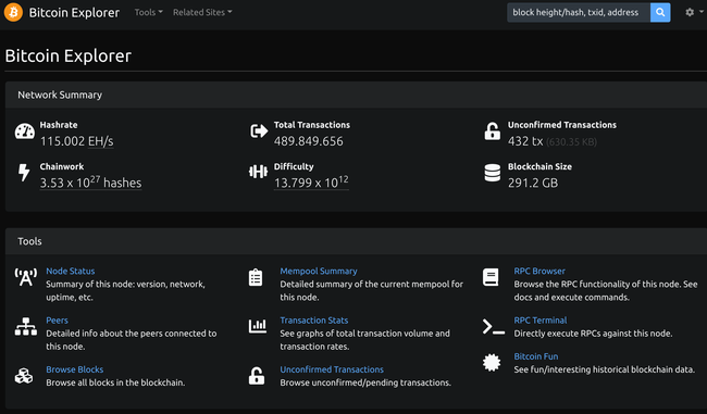 Bitcoin Explorer es un explorador desarrollado por Janoside que permite visualizar la actividad de la red de Bitcoin desde tu propio nodo.