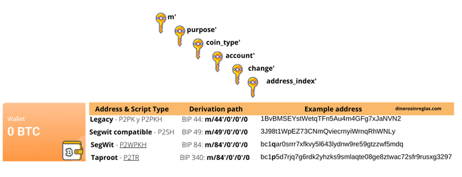 Existen 4 formatos de direcciones o address que el protocolo de Bitcoin maneja: