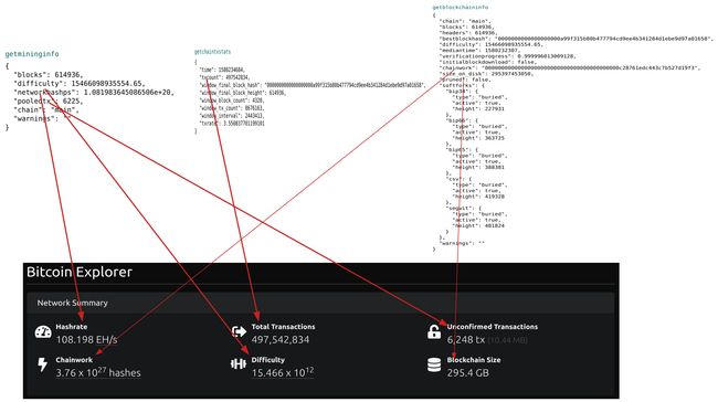 Este software te permite conocer de manera gráfica mucha información de tu nodo, pero no sabes de dónde viene, sin embargo si por ejemplo fueras programador o tuvieras inquietud por hacerte tu propio cuadro de mando para conocer la información de lo que sucede en la red y que es muy útil para entender si hay un alto volumen de transacciones por confirmar, cuál es la dificultad con la que se esta minando, etc., con unos cuantos comandos podrías saberlo.
