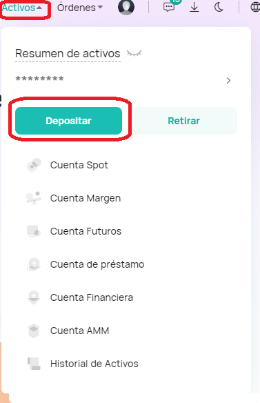 Accede a "Activos": En el menú superior, selecciona "Activos" y luego "Depositar".