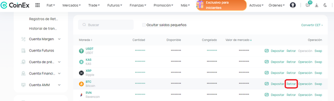 Una vez que ya hemos adquirido BTC desde CoinEX, tenemos que retirarlo a una dirección de bitcoin de autocustodia, ya que si por alguna razón el exchange cierra, lo hackean o nos elimina nuestra cuenta, perderemos todos los activos que teníamos en esa cuenta.
