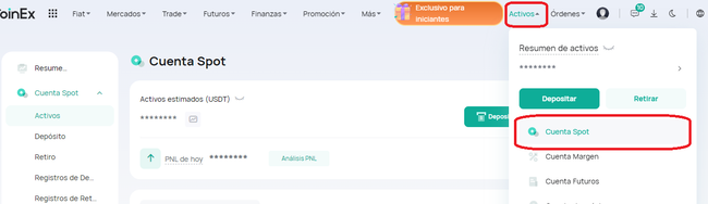 Al pulsar sobre "Cuenta Spot", nos mostrará todo el saldo de nuestras criptomonedas.
