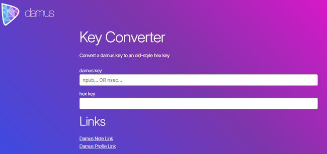 Introducir npub en damus key y nos devuelve la clave en hexadecimal.