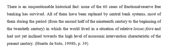 Banking crises of various kinds occurred in countries with free banking systems, as Selgin himself acknowledged in his work of 1993 (Table 1b, p. 112), where he cites the cases of Scotland (1797), Sweden (1907), Canada (1837, 1914, 1923), South Africa (1920), and Australia (1893).